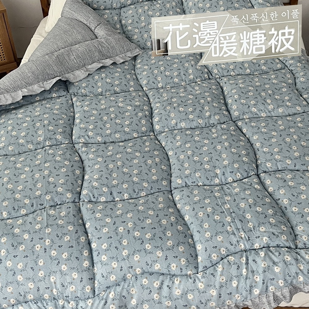 韓國版小花圖案,蕾絲邊壓框設計,美觀又保暖。
